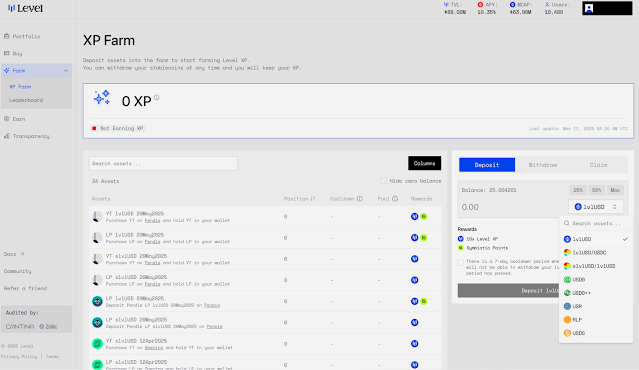 사용자는 레벨 머니에서 USDT 또는 USDC와 같은 스테이블코인을 예치하고, 추가적인 수익을 얻으며 네트워크 보안에도 기여할 수 있습니다.